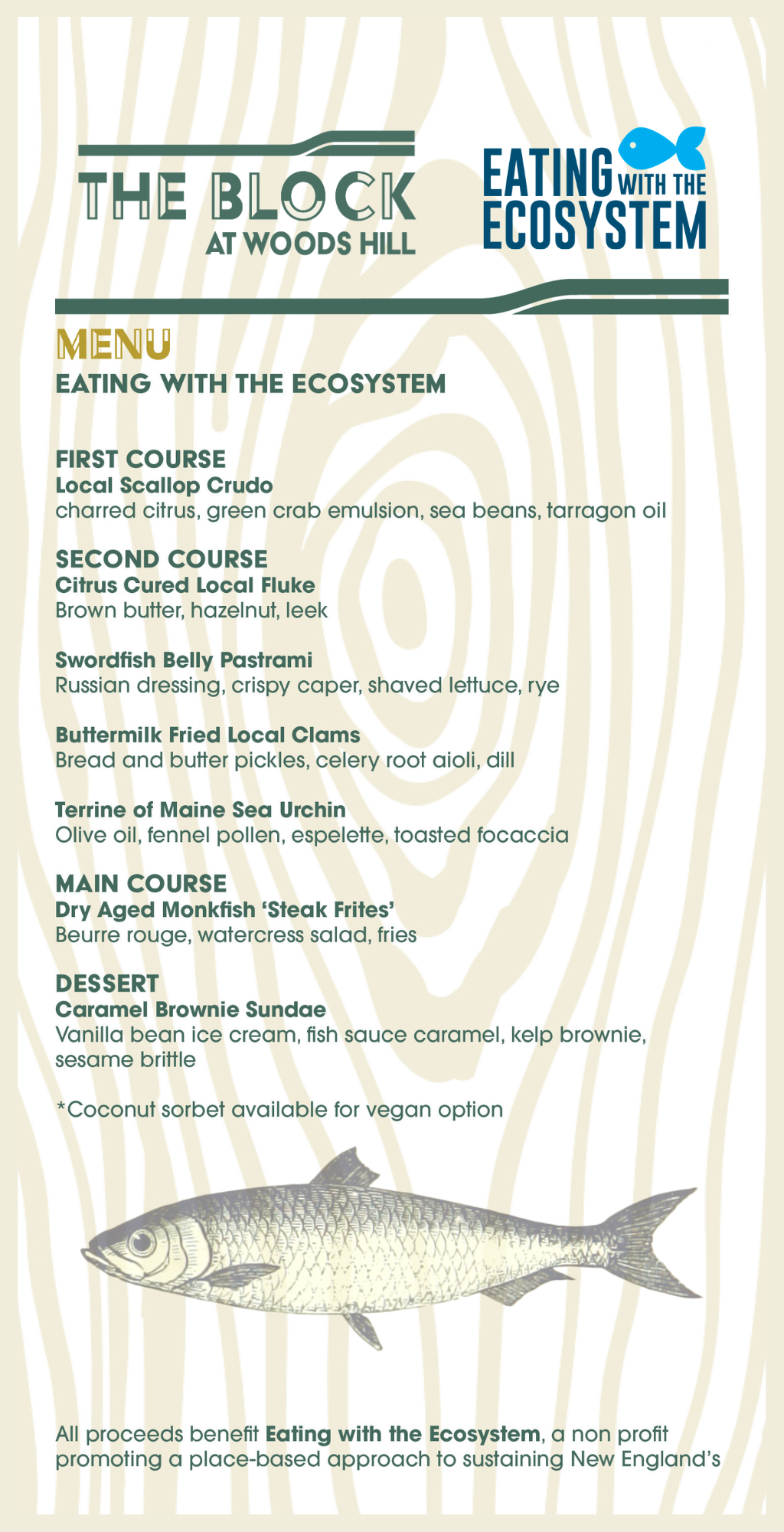 The Block at Woods Hill is proud to partner with Eating with the Ecosystem for a special dinner celebrating a place-based approach to sustaining New England’s wild seafood.